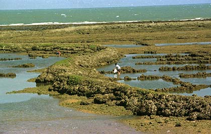Cogiendo calle Isaac Peral abajo, una calle de esas vivas, llenas de comercios, se llega hasta la playa, que está en el mismo casco antiguo de la ciudad. Allí se pueden ver cuando la marea está vacía los corrales de pesca, un método de pesca inventado en época clásica y que consiste en construir unos muros de piedra formando piscinas. El pescado entra en la pleamar y se queda encerrado cuando baja la marea. Aún lo siguen utilizando pescadores. Se puede preguntar en la oficina de turismo (Calle del Castillo) porque en ocasiones hay rutas para explicarlos.