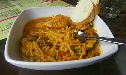 Ya puestos a comer algo, vamos a seguir la “tirá”. Siguiente parada en “El Volapié”, en la calle Isaac Peral. Si tienen los fideos a la marinera…pa entro y si no la tortilla de escombros, otra delicia de la casa. Casi al lado, el restaurante La Pañoleta. Si eres de berza no pierdas la oportunidad. No siempre la hay. El cazón frito es otra delicia a probar. Luego andamos un poco hasta el bar Aurora, situado junto al mercado de abastos, cerca de los dos anteriores. Hay que pedir la corvina frita que ponen con un alioli de guarnición pa comerse un tanque de 20.000 litros.